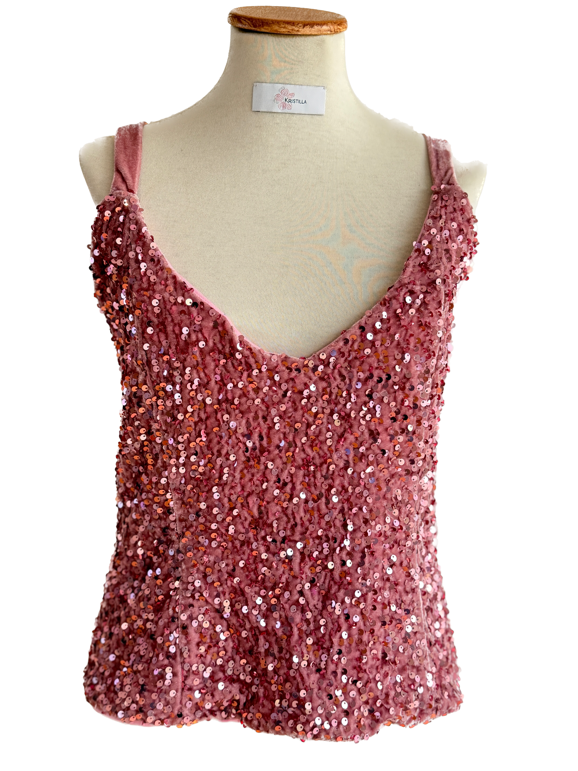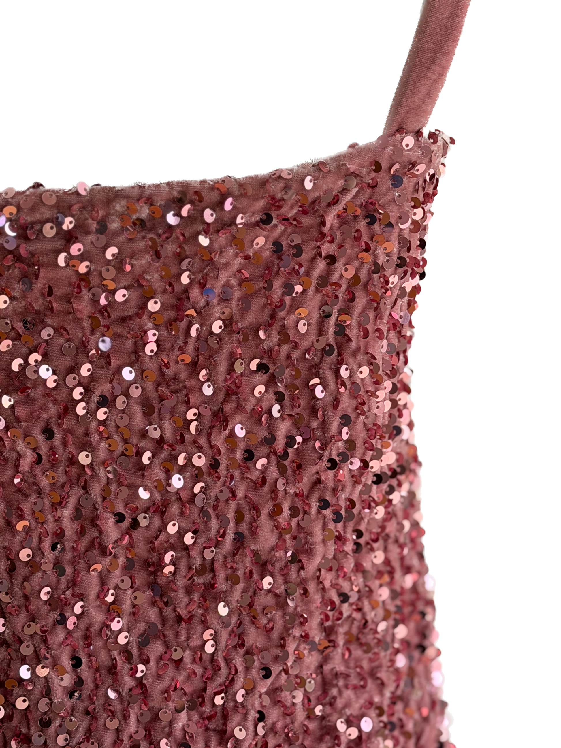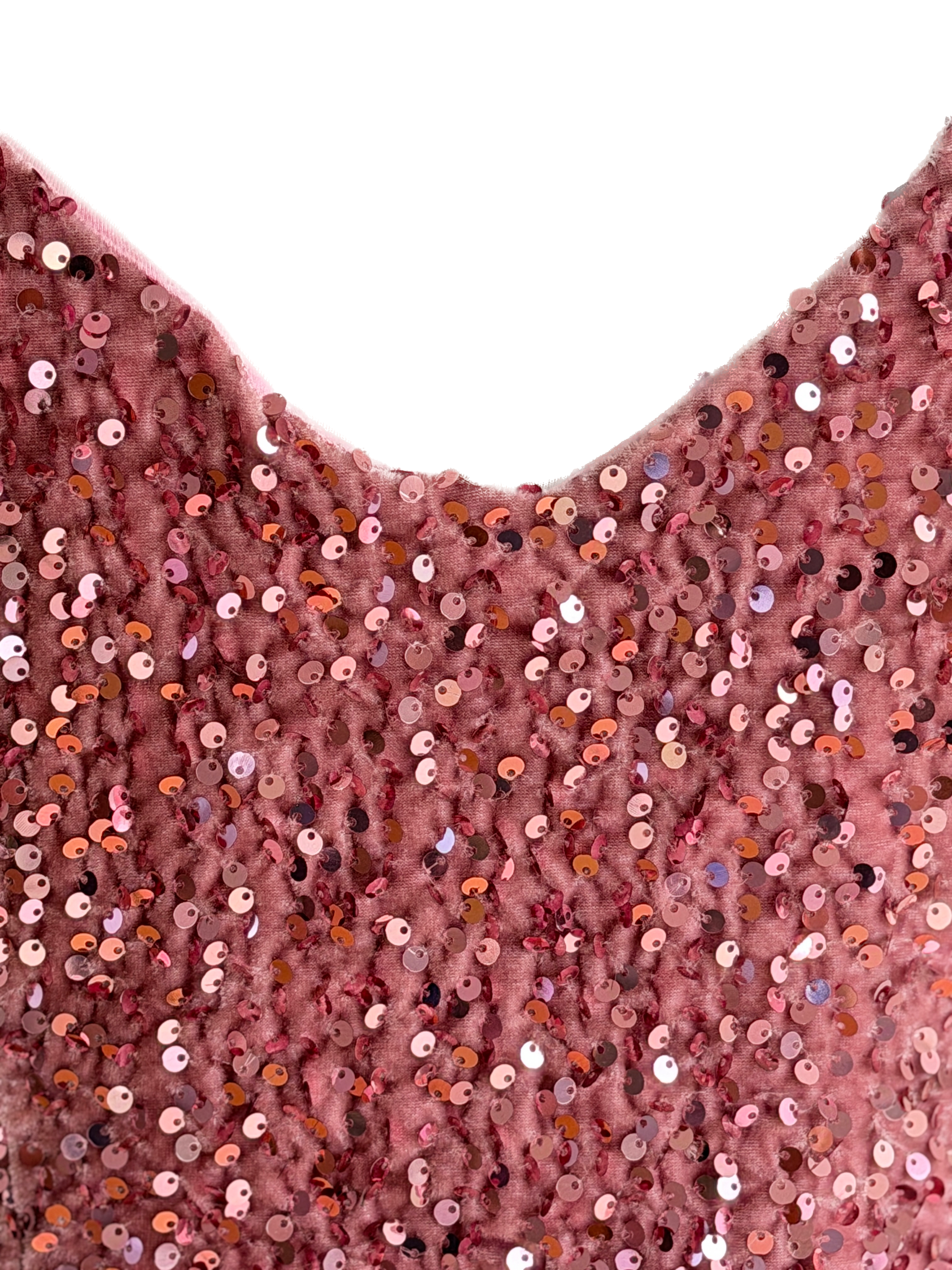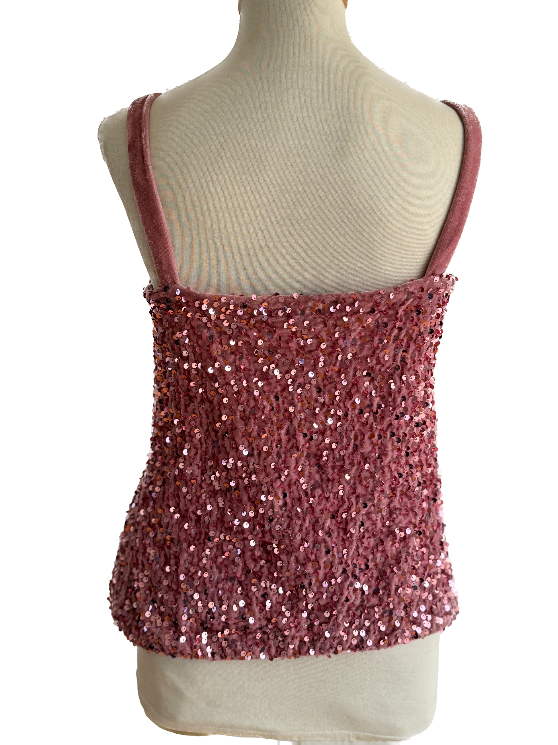 Top escote V tipo corsette. Terciopelo con lentejuelas. Elástico, con fondo. Largo a la cintura.