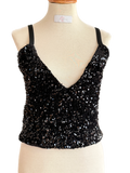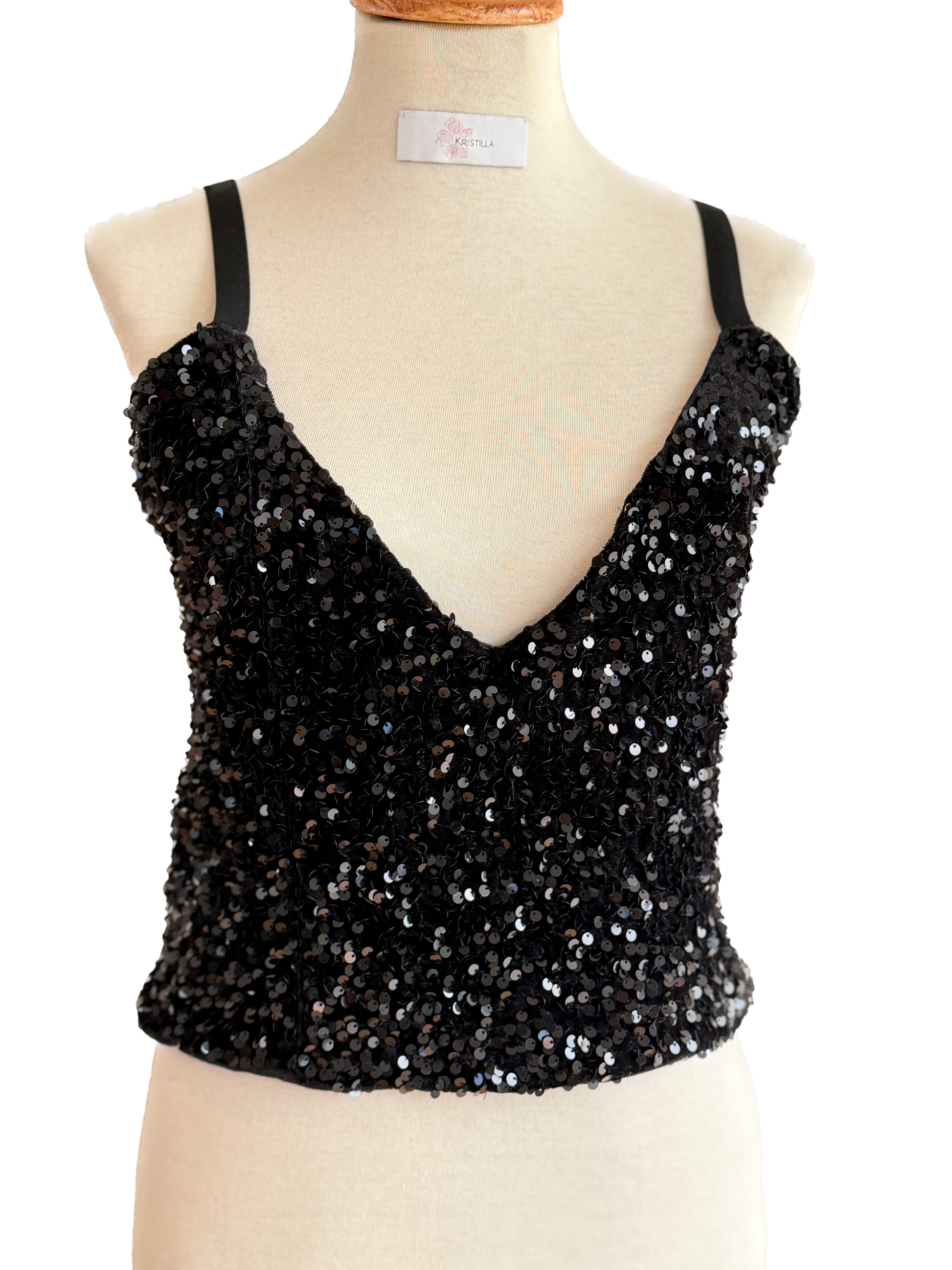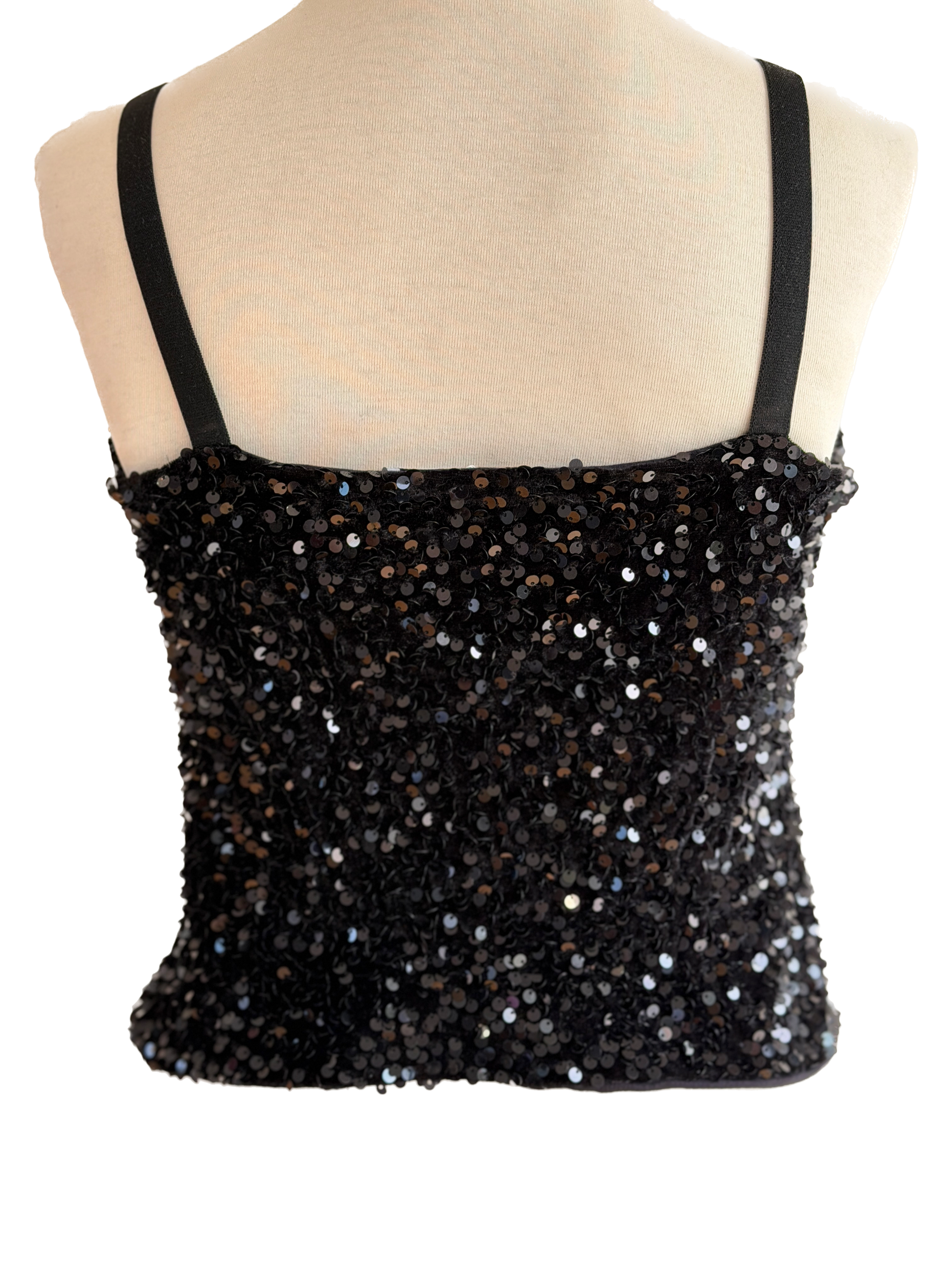 Top escote corazón tipo corsette. Terciopelo con lentejuelas. Elástico, con fondo.
